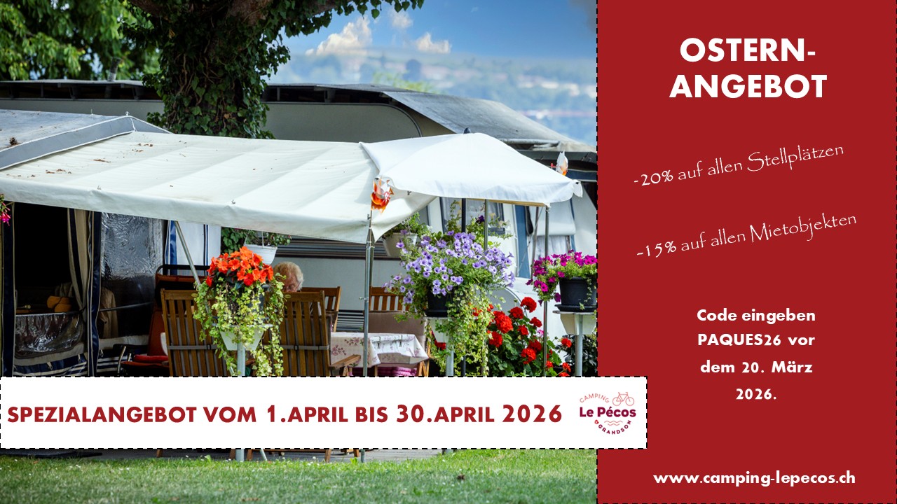 Spezialangebot vom 1. April bis 30. April 2026!-20% auf allen Stellplätzen-15% auf allen Mietobjekten (Roulotte - Fass - Mobilhome)Code eingeben : "PAQUES26" vor dem 20. März 2026